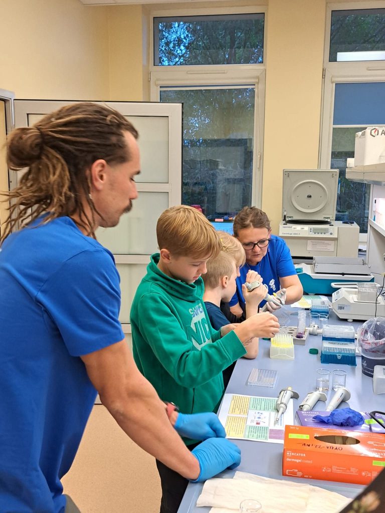 The educational program included engaging lectures and workshops. The lecture “Do insects have a brain?” introduced participants to the fascinating world of bees and their unique “waggle dances,” a form of communication for which Karl von Frisch received the Nobel Prize in 1973. Another highlight was the workshop “Look inside the cell”, where participants observed neurons under the microscope and examined how different substances affect their condition. Using simple colorimetric methods, they were able to see differences between healthy and damaged cells – a principle applied in research on the action of new medicines.